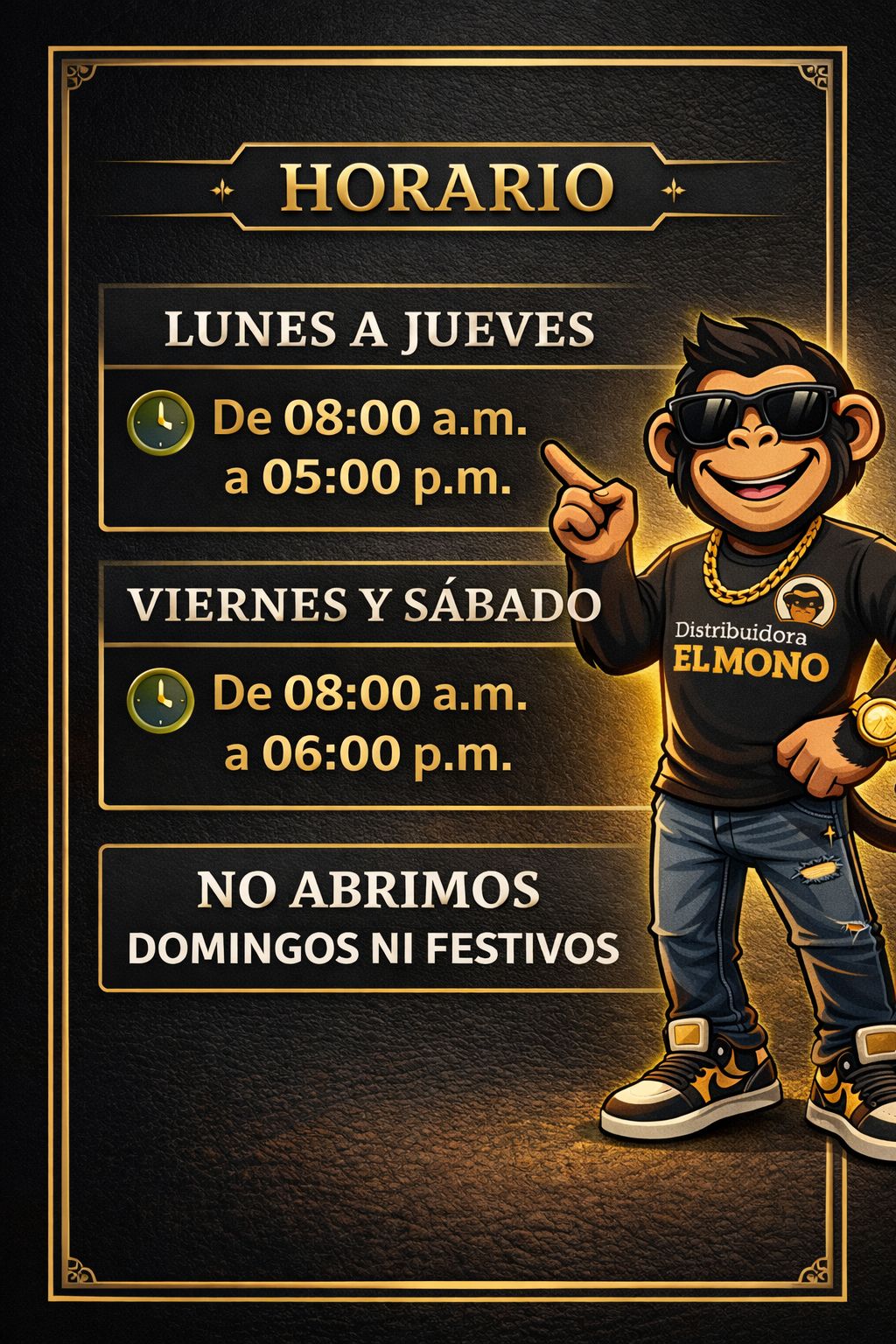 DISTRIBUIDORA El MONO es una empresa dedicada a la comercialización responsable de licores, bebidas y tabaco, comprometida con la calidad del servicio, la atención personalizada y la satisfacción de sus clientes.