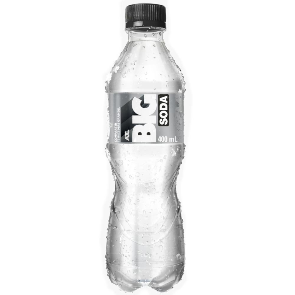 Bebida gasificante sabor natural con burbujas, botella PET de 400 ml, caja de 12 unidades.
