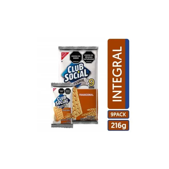 Galletas saladas integrales, ligeras y prácticas para snack. Paquete por 9 unidades.