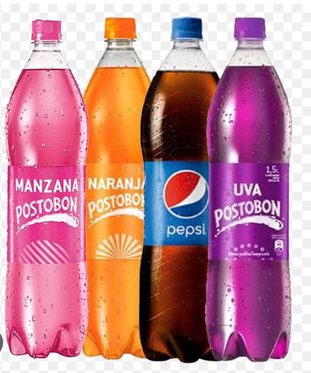 Gaseosa Postobón en botella de 1.5 litros, pack de 12 unidades, sabores variados.
